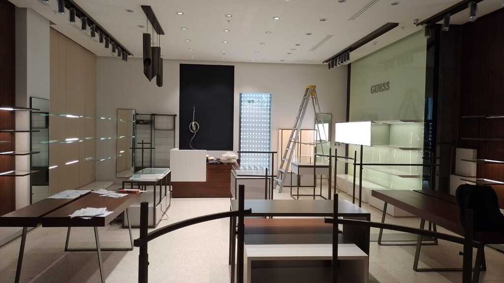 En este proyecto desarrollamos la especialidad eléctrica, además de los trabajos de pintura y cerramientos, garantizando una ejecución de calidad y cumpliendo con los estándares exigidos por la marca. El resultado fue un espacio renovado, funcional y acorde a la imagen corporativa de GUESS.